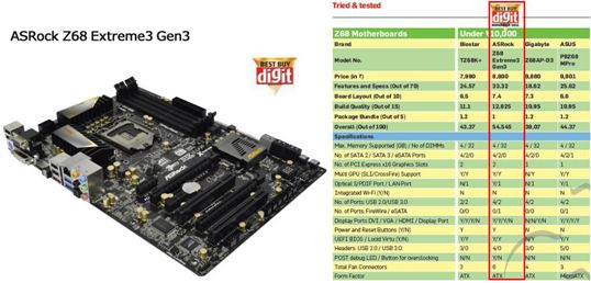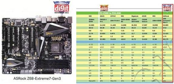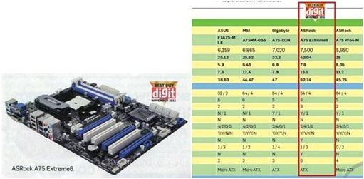 2011年11月18日, 隸屬於印度Jasubhai出版集團旗下的Digit雜誌, 是印度當地唯一突破10萬本發行量的電腦雜誌, 就在日前出刊的11月號主機板評測評比中, 華擎憑藉傲人的產品品質以及高性價比表現, 一舉奪得三項"最佳"大獎, 輕鬆擊敗當地市售超過30款Intel® Z68以及AMD A75晶片組主機板, 成為本次年度評測中主機板品牌的最大贏家。