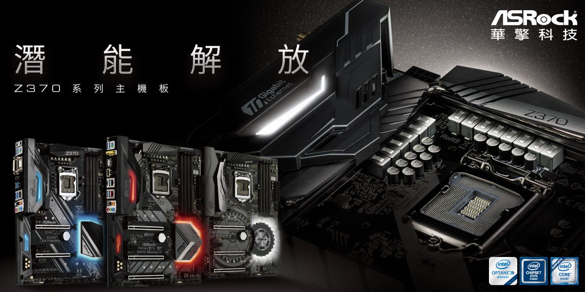 2017年09月29日, 全球主機板領導品牌華擎科技 (ASRock Inc.) 於今日正式宣佈華擎 Z370 系列主機板正式上市, 旗下主機板從入門到高階全線齊備, 準備迎接 Intel® LGA 1151 腳位的第8代處理器系列到來。華擎Z370系列主機板以供電作為研發重點, 獨家Hyper DDR4設計更大幅提昇超頻性以及相容性, 還擁有同級唯一內建10Gb/S網卡設計, 獻上滿滿誠意。