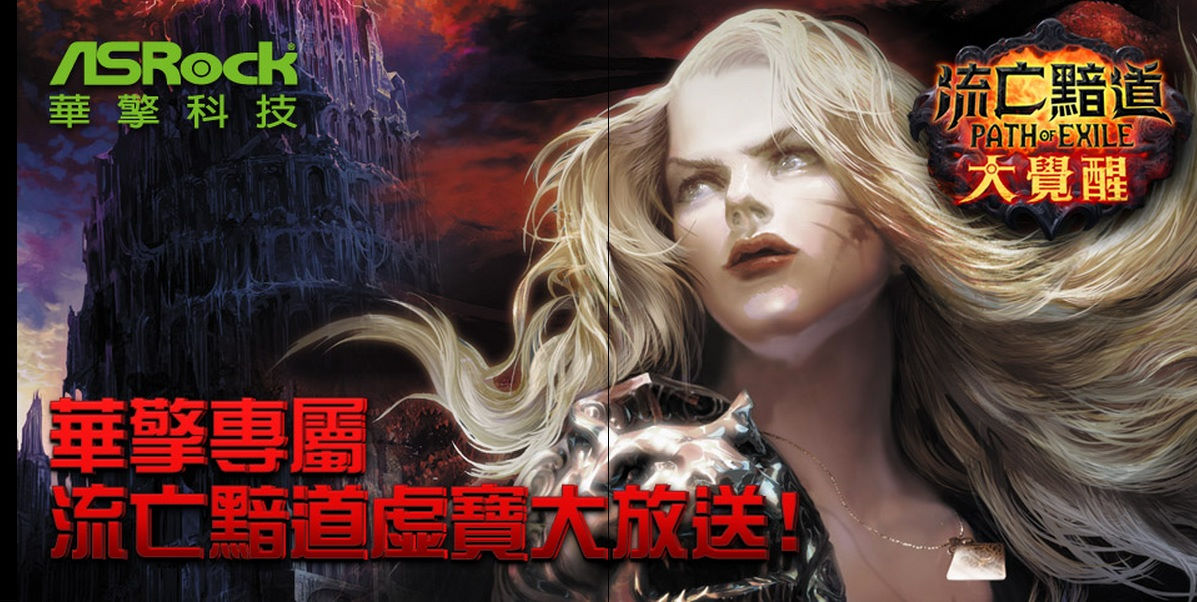2015年9月3日, 華擎100系列主機板好康大放送!華擎科技與Garena台灣競舞娛樂首度合作, 總價值超過三百萬的《流亡黯道PoE》遊戲虛寶大放送! 即日起凡購買華擎指定型號主機板, 運用內建軟體ASRock APP Shop下載《流亡黯道PoE》遊戲, 即享有華擎專屬《流亡黯道PoE》遊戲虛寶組合包, 每組市價超過新台幣1,170元!數量有限, 送完為止!