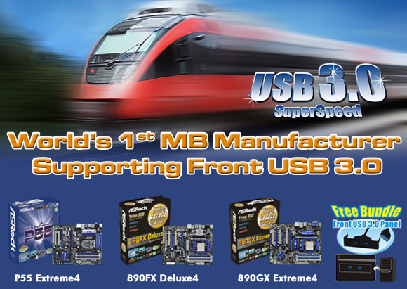 ASRock P55 Extreme4 World’s First MB Supporting Front USB 3.0 | |
